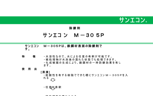 M-305Pは鉄鋼材表面の除錆剤です。
