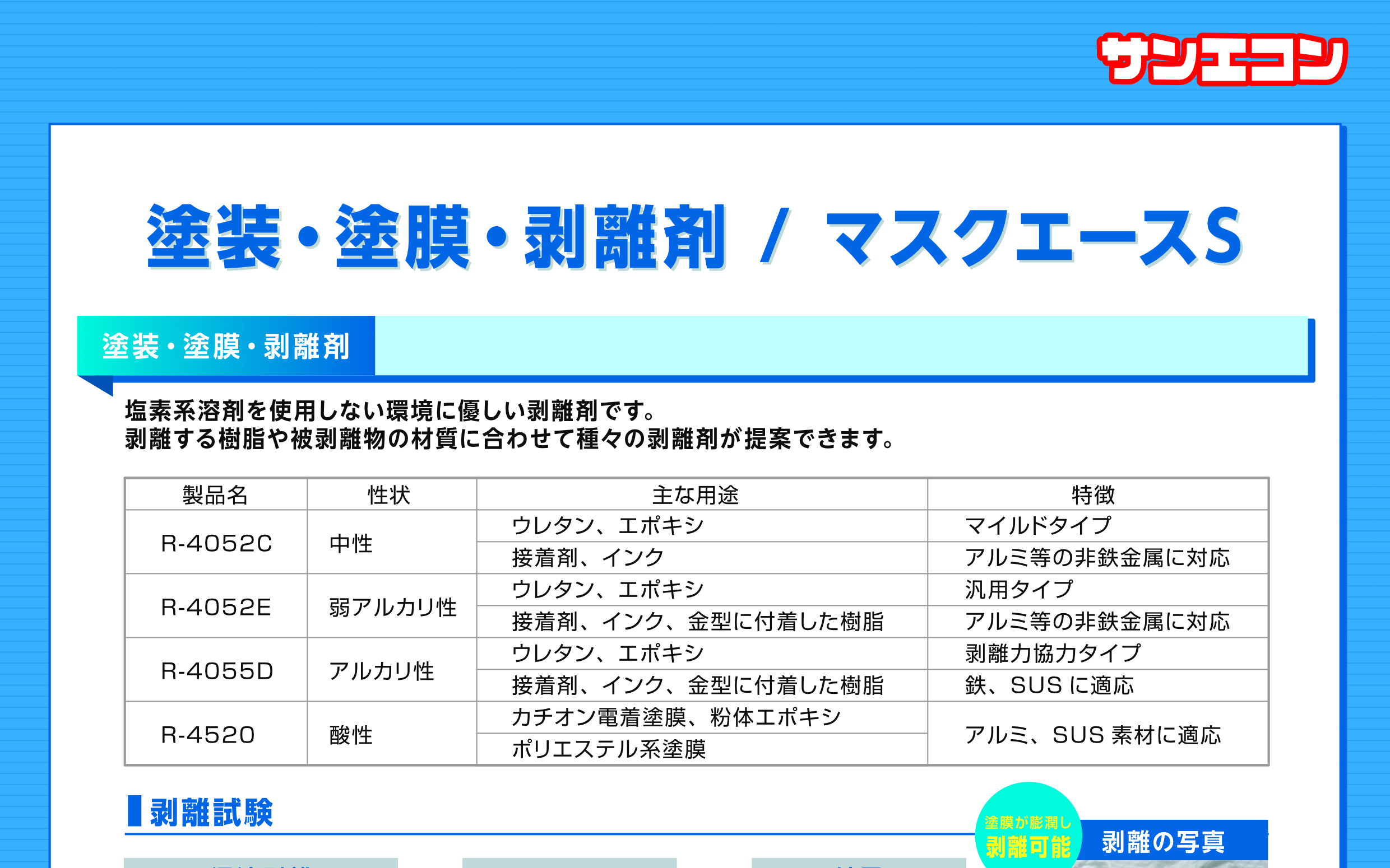 エポキシ、ウレタンなど様々な塗膜・塗料に対応出来るラインナップを取り揃えています。